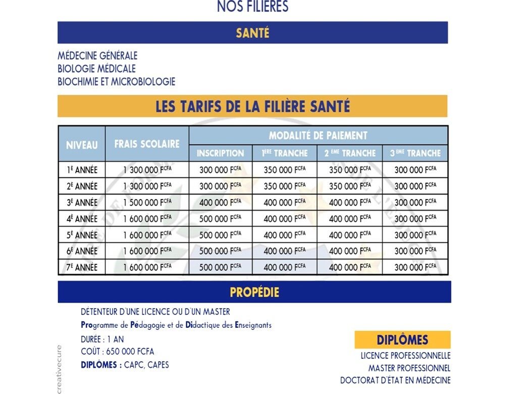 Les étudiants s’inscrivent en 1ère année (PACES) selon les critères bien définis (BAC scientifique) et continuent leur formation dans les semestres 3 à 6, correspondant aux 2ème et 3ème années du Diplôme de Formation Générale en Sciences Médicales (DFGSM).